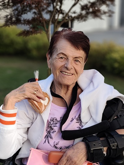 Za veselú hudbu heligónky a chutný koláč ďakujeme príbuzným našej klientky a oslávenkyni.